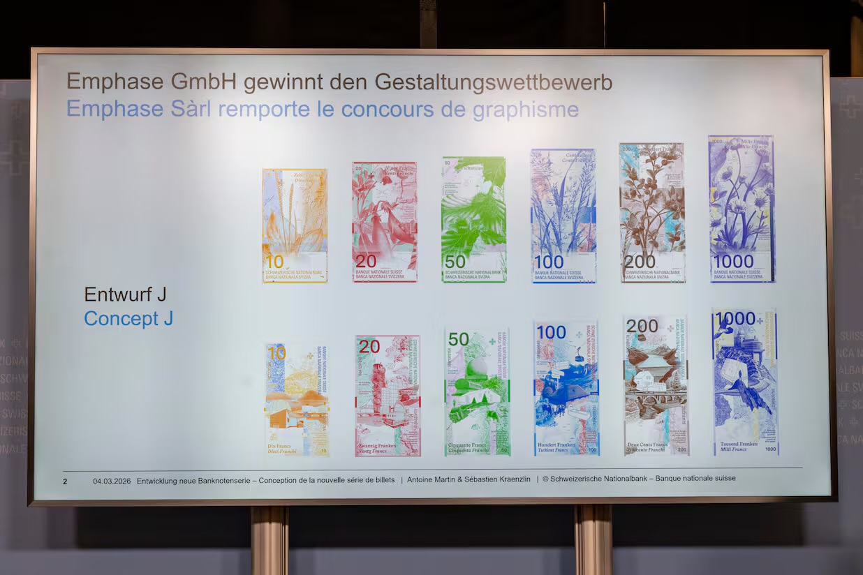 İsviçre Merkez Bankası (Schweizerische Nationalbank), yeni banknot serisi için düzenlediği tasarım yarışmasının kazananını kamuoyuna duyurdu. Bankanın açıklamasına göre yeni banknotlar en erken 2031 yılında dolaşıma girecek.