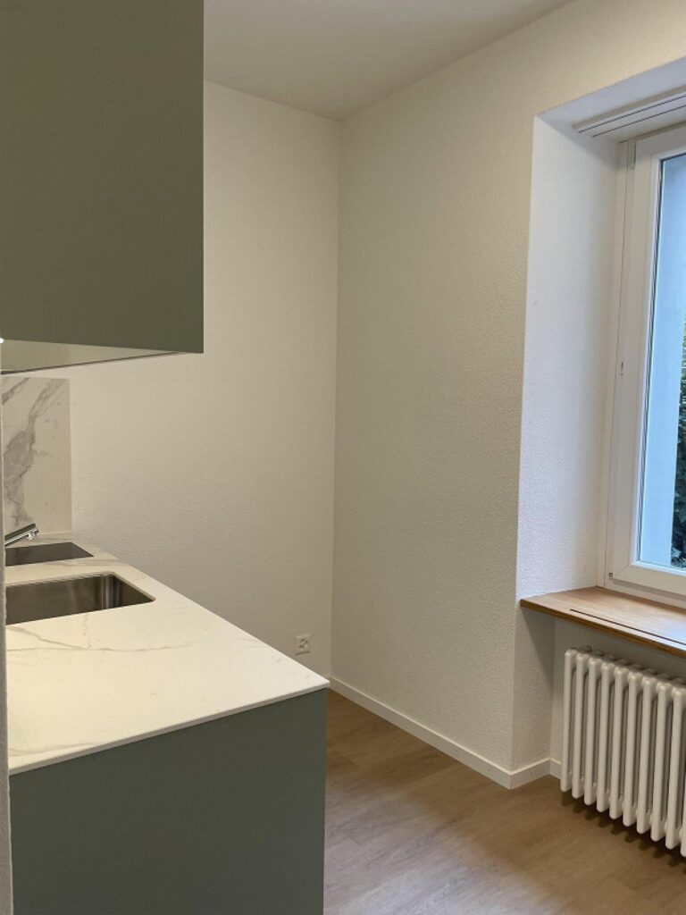 Daire, Zürih ana tren istasyonuna yaklaşık altı dakikalık yürüme mesafesindeki Neugasse 40 adresinde bulunuyor. İlan metninde konut “kompakt bir şehir dairesi” olarak tanımlanıyor. Fotoğraflarda duşlu bir banyo ile tek odanın büyük bölümünü kaplayan küçük bir mutfak yer alıyor.